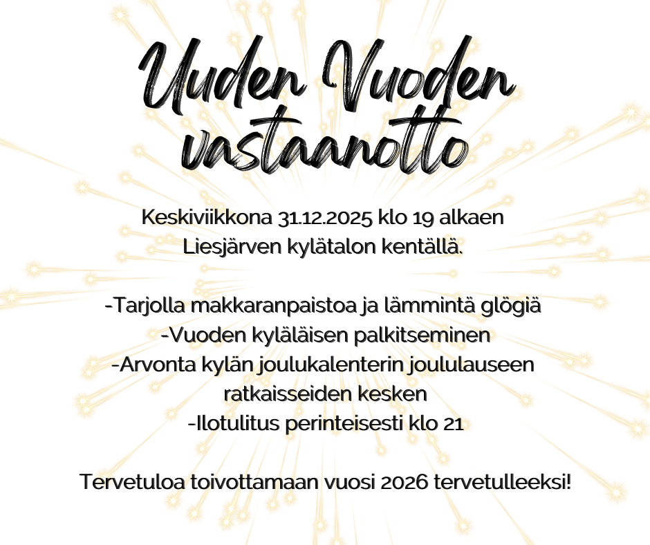 Torstaina 18.12.2025 klo 18.00 Liesjärven kylätalolla. Tervetuloa mukaan!
