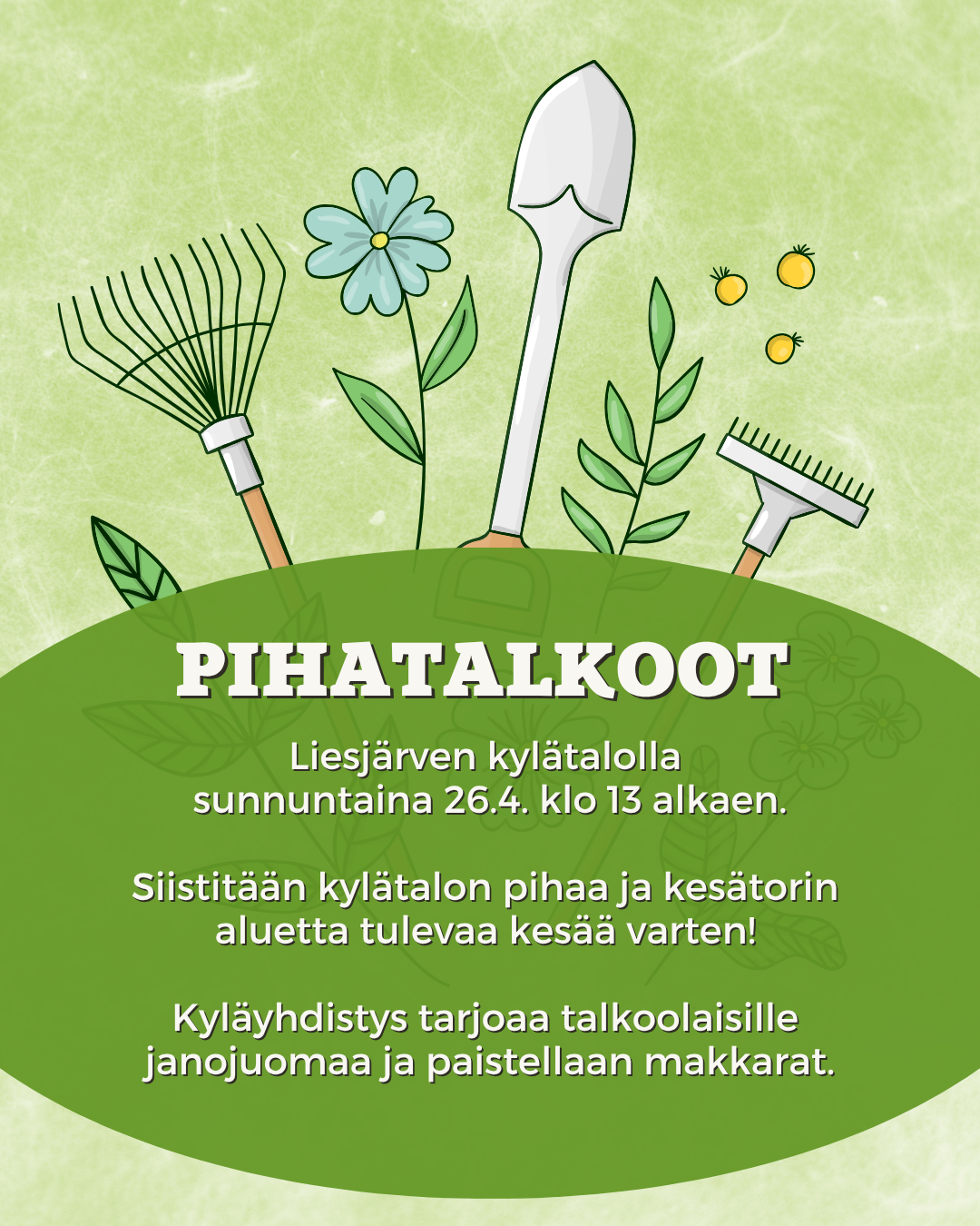 Maanantaina 20.4.2026 klo 18.00 Liesjärven kylätalolla.